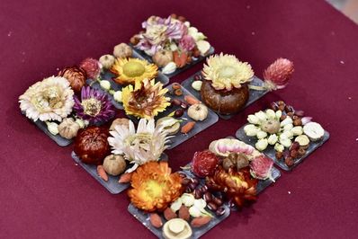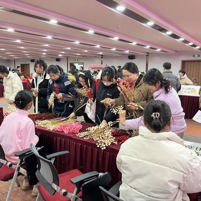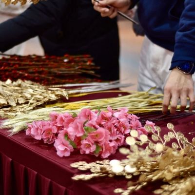 一旁的“锦簇手铸如意春”摊位则摆满各式干花,大家亲手搭配、捆扎,一束束年宵花传递出吉祥如意的美好寓意。