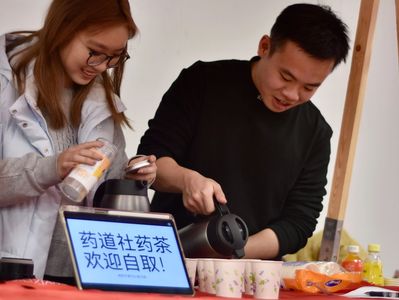 本次活动还特别邀请药道社共同参与。他们精心准备了“茉莉清心茶”与“枣桂暖暖汤”两款温润饮品,在冬日里为同学们送来一份暖意,也为游园会现场更添一缕沁人清香。